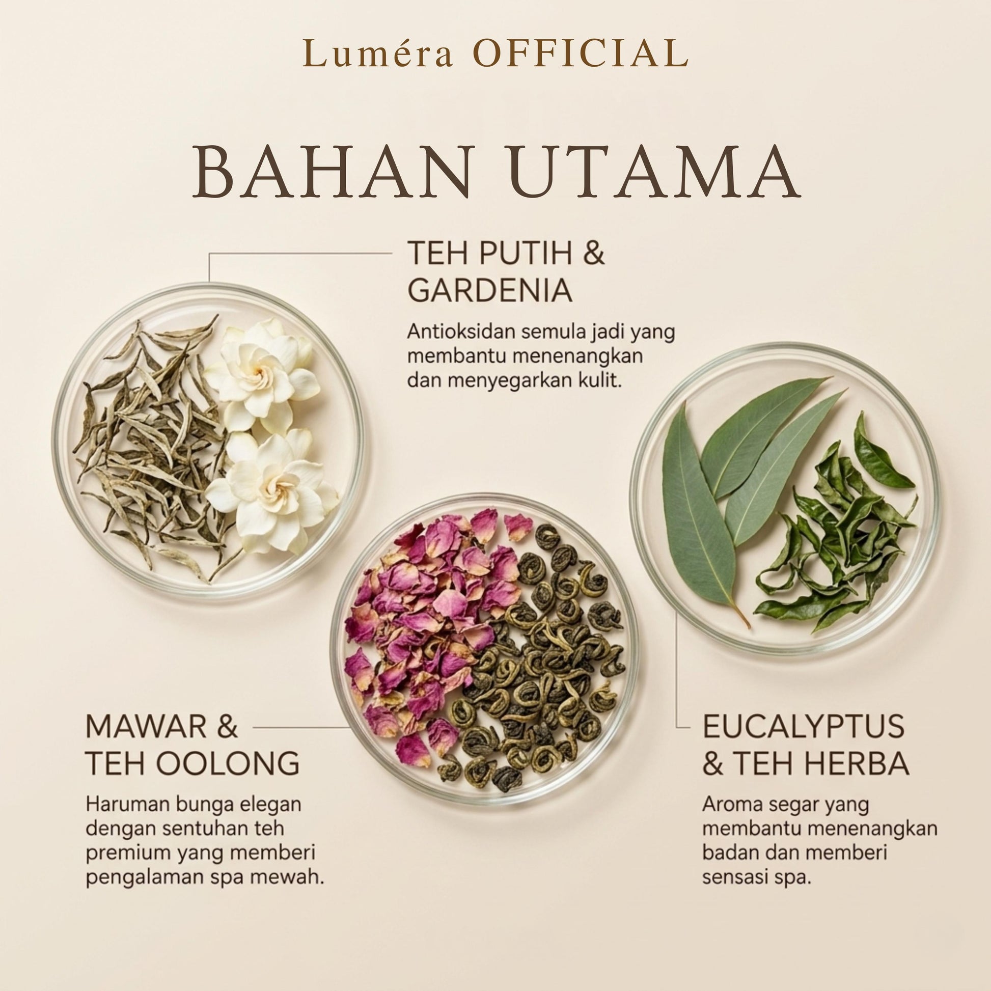 Lumera™ features a clean, fresh spa fragrance inspired by 5-star hotel amenities — calm, exclusive, and refreshing all day long.
